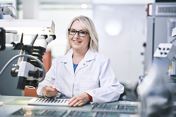 We start each day with a short meeting and the shift supervisor gives each of us a work schedule with the orders that need to be completed. In the Elements Production, we solder and bond a total of 14 products. Because the circuit boards are sensitive, we also work in the greyroom in some cases. Much of the work is manual and it requires accuracy and dexterity. During visual inspection, the production work is closely scrutinised once again before being further processed or packaged for the customer.