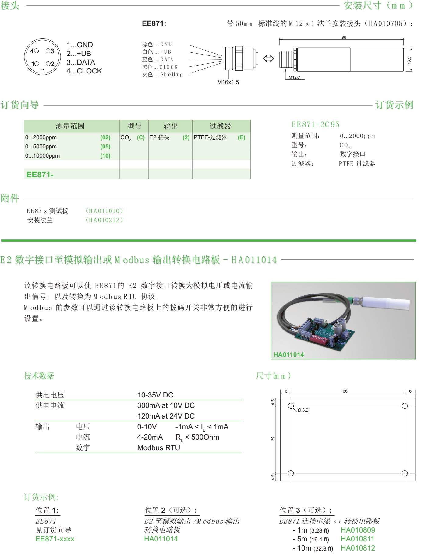 EE871系列CO2探頭是專門OEM應用開發(fā)設計,應對苛刻的環(huán)境,能在惡劣的工況下工作,并免于維護。多點的CO2和溫度校準,使得在全量程工作范圍內,探頭都能獲得很高的測量精度,是農業(yè)和戶外應用的選擇。